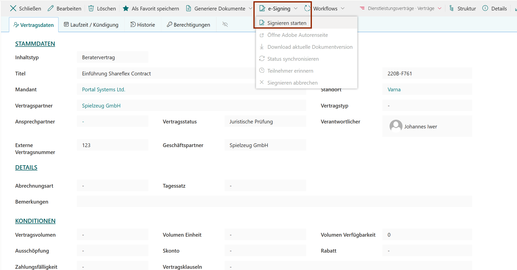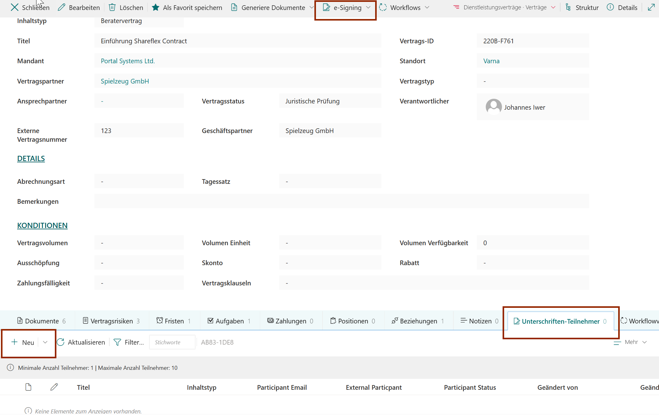 - Open het contract-/zaakdossier.
