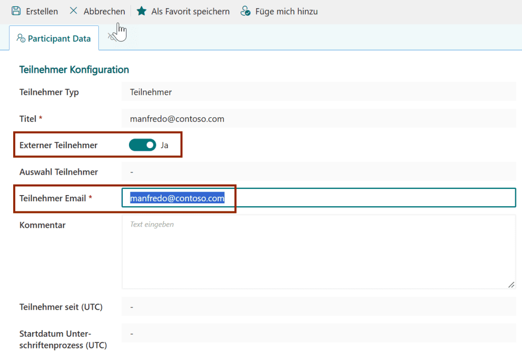 Schakel External participant in en voer een geldig e-mailadres in bij Participant e-mail.