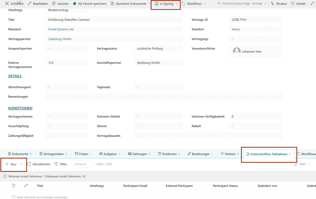 - Open de secundaire lijst “Signature participants”.